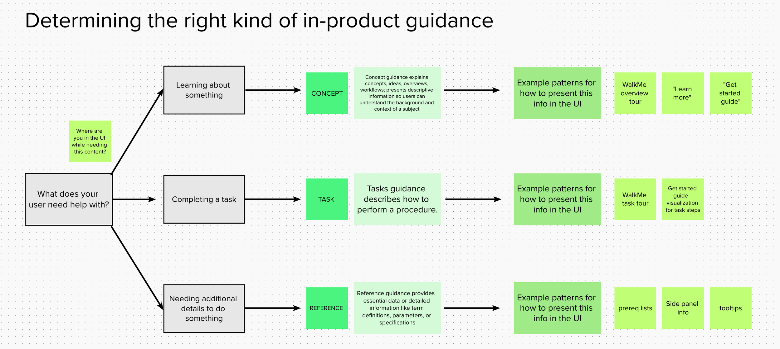 Decision tree to help teams decide which kind of in-product guidance might work best: