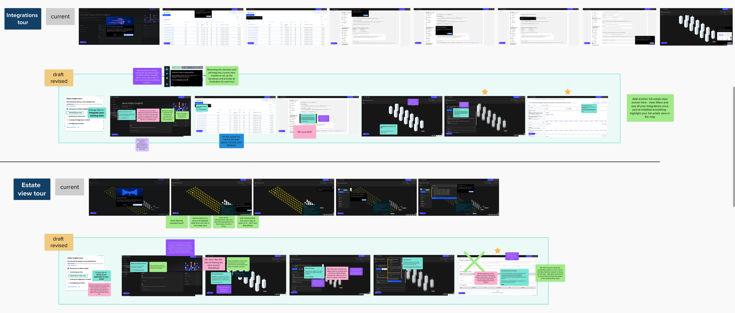 Review Mural for reworking our AIOps Insights tours to be more narrative: