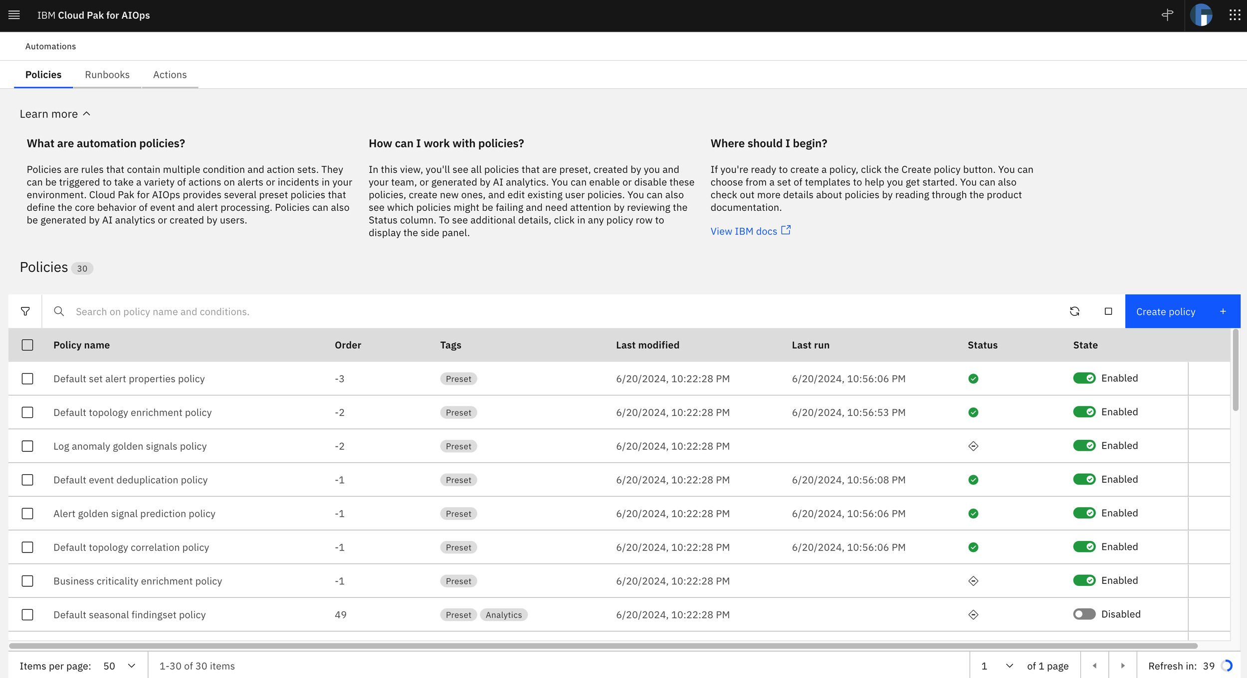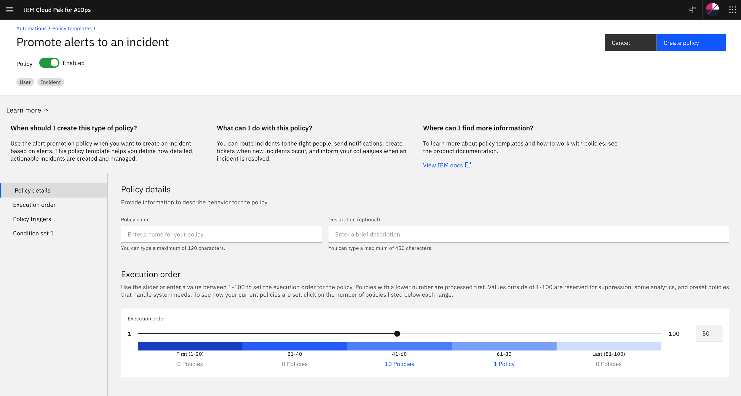 Learn more in Automation policies is two levels deep. We have information on the landing page as an overview for all of Policies and then a section within each policy template as well: