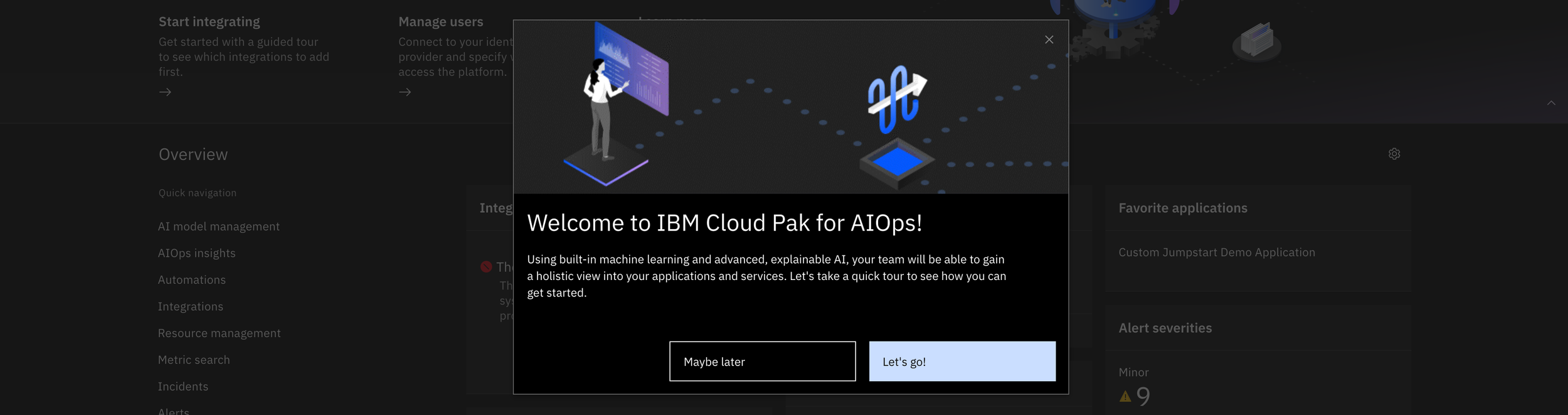 Overview and task WalkMe tours from Cloud Pak for AIOps: