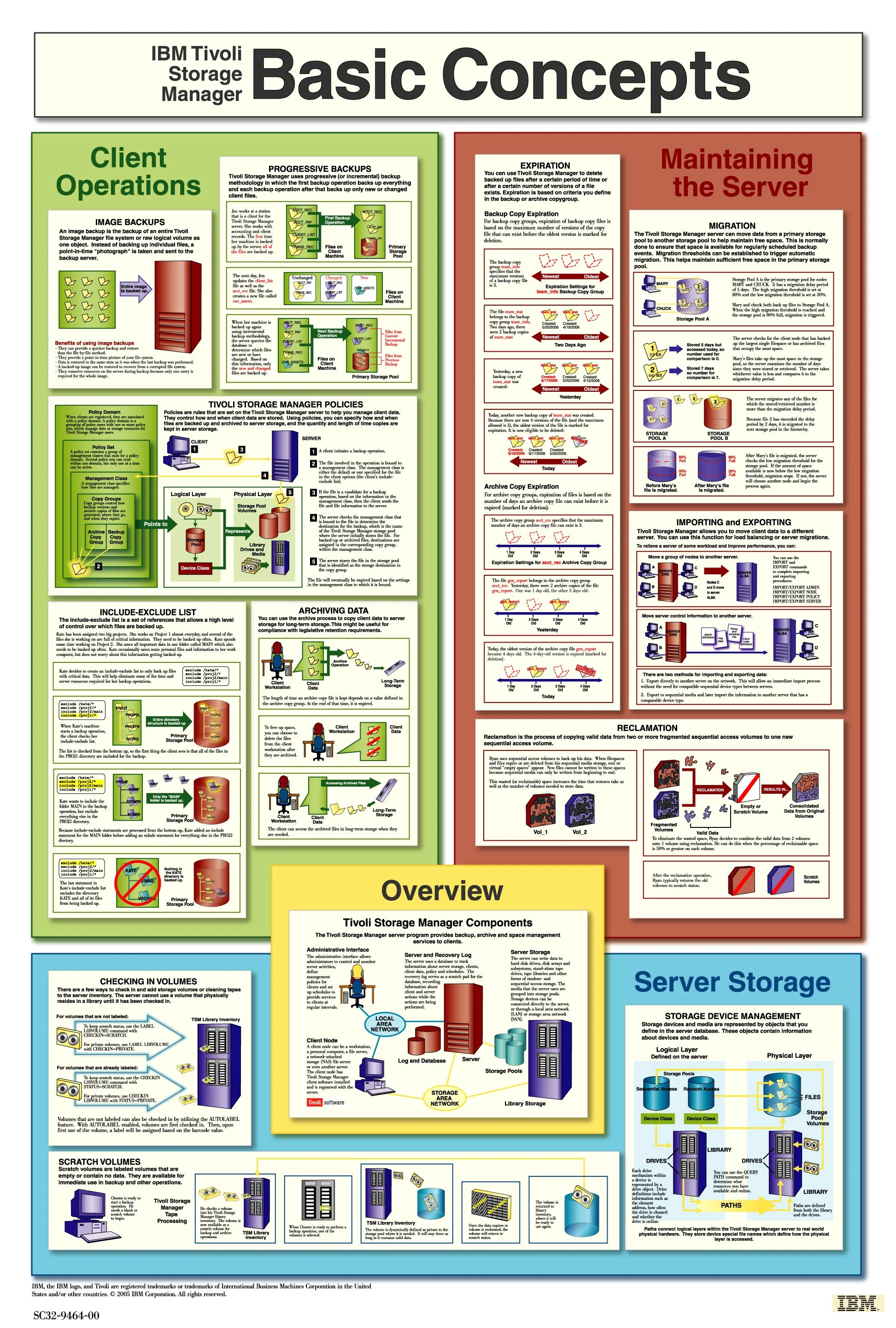 In early 2005, a few years after I joined the Tivoli Storage Manager server ID team full time, an idea was born to try and create a poster that would help explain the best features of our product. As I had already weaseled my way into working on technical diagrams for the documentation, I was tapped first to explore the idea of creating a poster that we could give to potential new users as well as existing customers. We had recently hired a technical writing intern, Andrea Acosta, and she came on board to help me as she also had graphic design skills and was interested in the project.