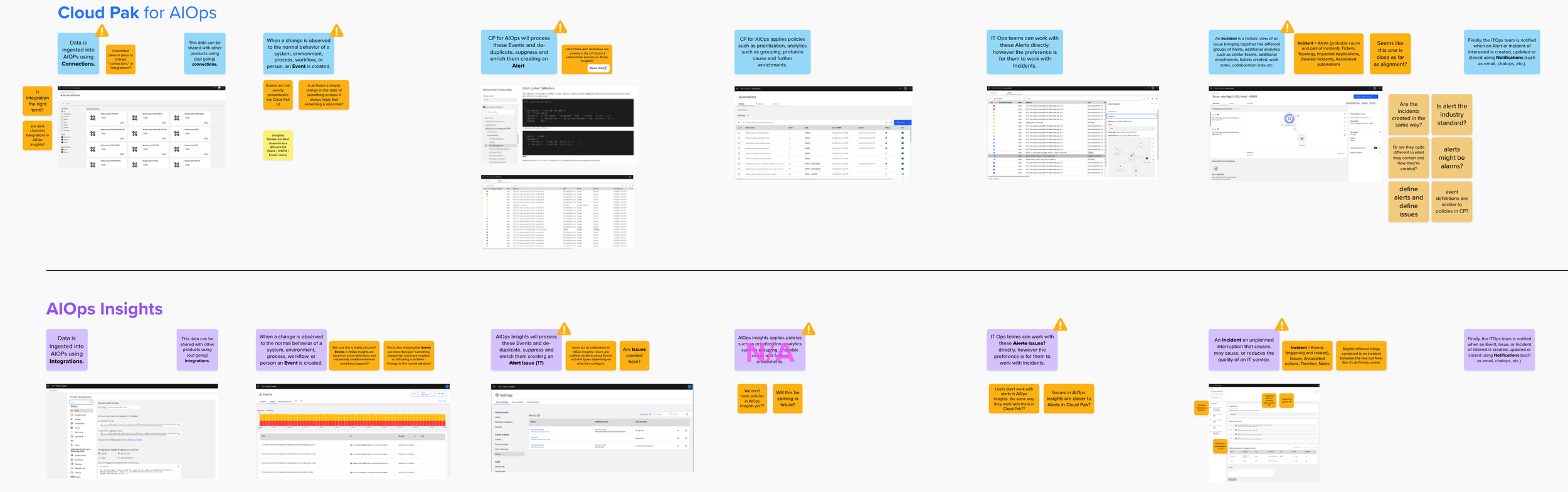 Following the deep dive on automation terms came an effort to align events terminology across products in our AIOps portfolio. We had similar concepts around events, alerts, notifications, and incidents, but were using different terms across three products. This was partially due to Instana’s acquisition status. As the teams were moving towards better integration among the products so that potential customers could gain additional functionality with ease, it became apparent that we needed some terminology work.