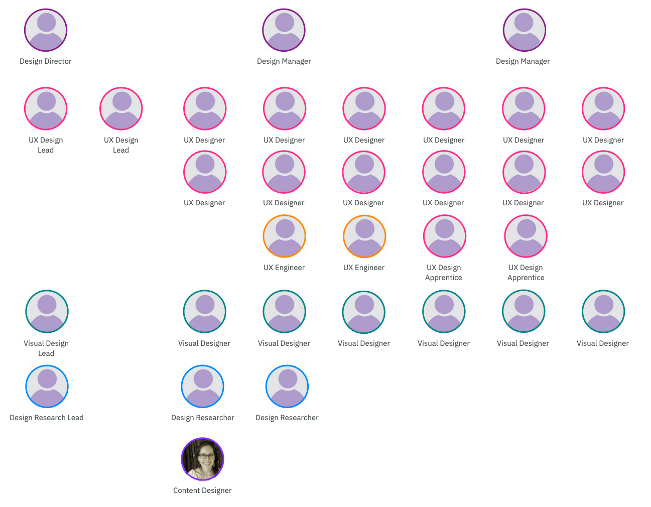 After the UX content designer pilot program was a success on Transformation Advisor and we brought another content designer onboard, I moved to a fairly small team with an ideal ratio of designers (a UX lead, UX apprentice, design researcher, visual designer, and me) for a special project. After a year, the effort was unfortunately shelved, so I moved again to the newly forming Cloud Pak for AIOps team and it was a whole different ballgame. I went from working with 2 UX designers to around 16. Figuring out how to provide meaningful UI content input while learning all areas of the product and trying to support each squad at the level I strove for was quite a challenge.