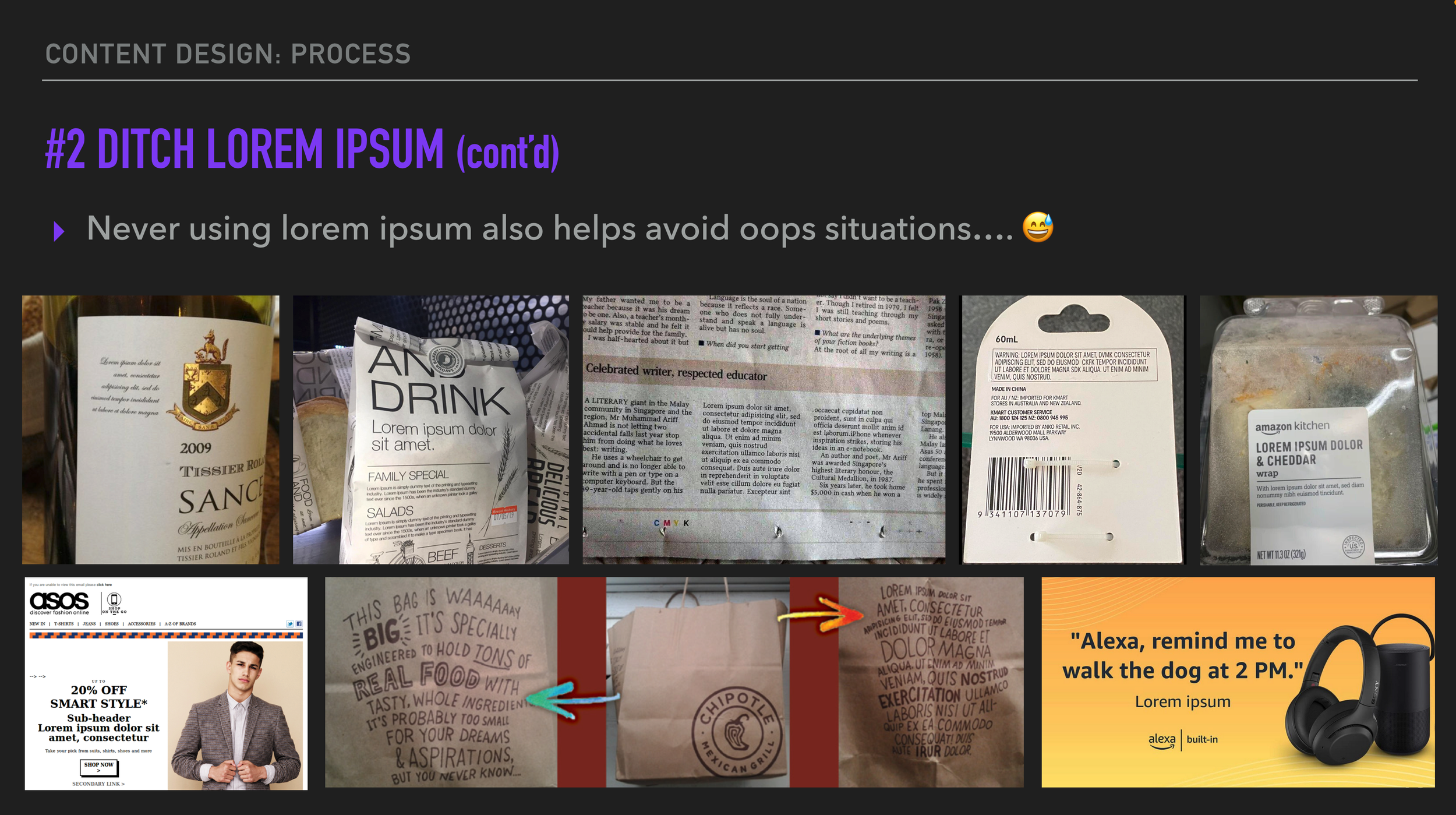 Build support for the importance of UX content design and perspective that UX design and interaction is inextricably intertwined with UX content.